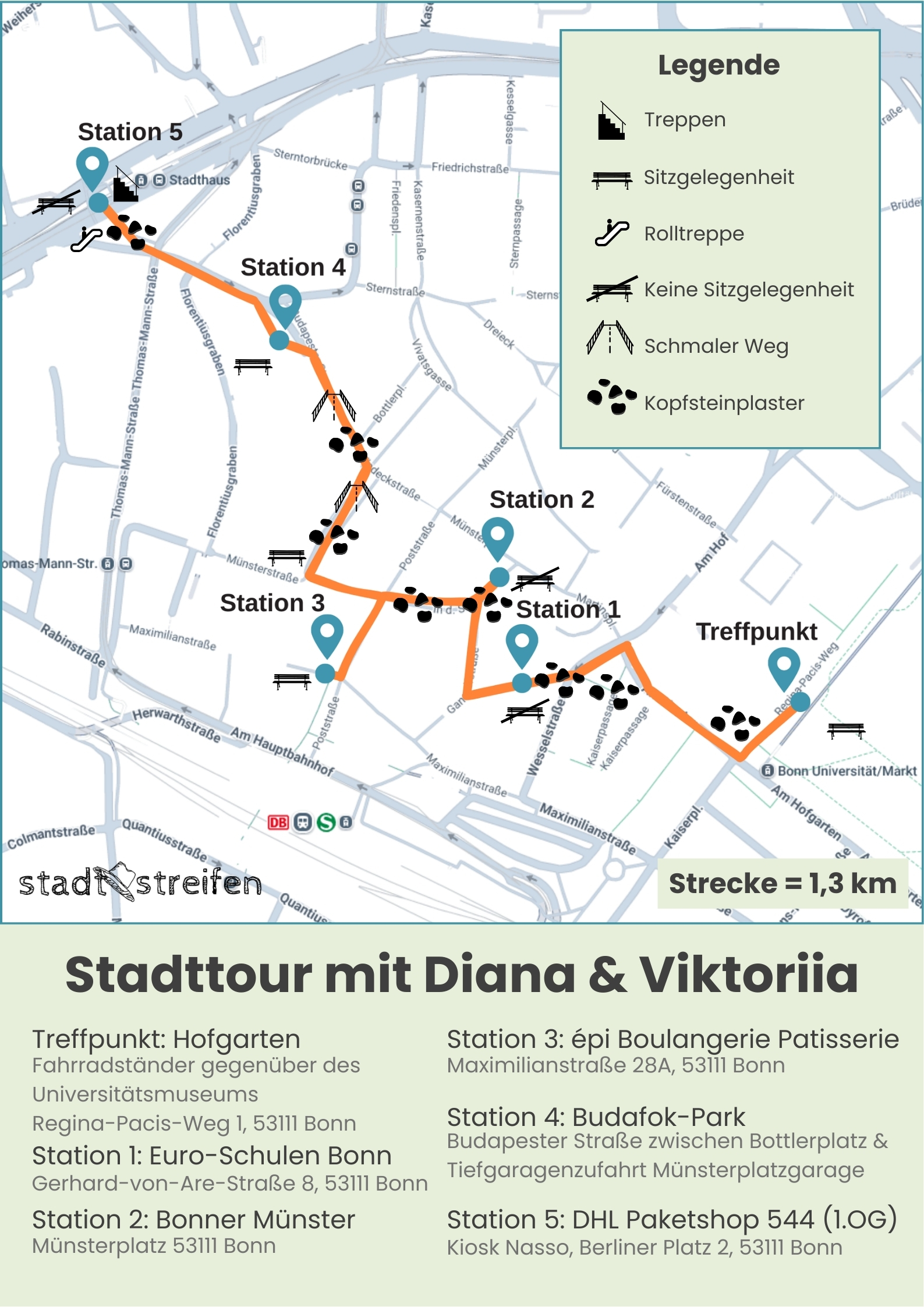 Diana und Viktoriia mussten nach dem Ausbruch des russischen Angriffskrieges in der Ukraine ihre Heimat verlassen. Auf dieser Stadtführung durch Bonn teilen sie ihre Geschichte: von der ersten Ankunft, dem Leben in Unterkünften, dem Umgang mit Behörden und von den alltäglichen Herausforderungen, sich in einer unbekannten Stadt zurechtzufinden. Dabei beschäftigen wir uns mit Fragen wie:
